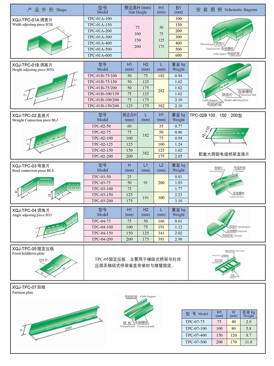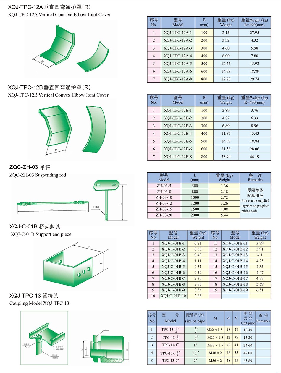 常见配件包括:三通、弯头、异径管、螺钉、锁紧、支架、吊杆、横杆、连接器、接地线等,此外,在一些可能发生振动的地方,还有电缆终端接线盒、电缆中间接线盒、连接管端头、钢板接线槽、电缆等,阻尼弹簧圈也应安装